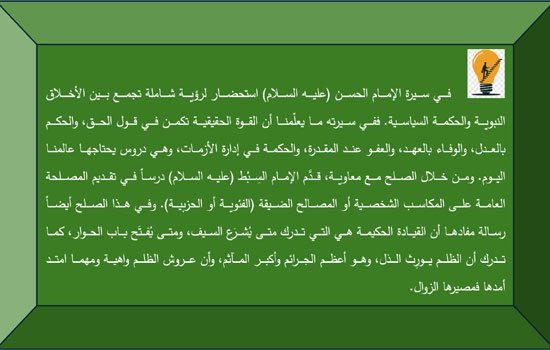 يحتفي الشيعة عند منتصف شهر رمضان المبارك بذكرى مولد الإمام الحسن بن علي بن أبي طالب (عليه السلام)، سبط النبي الأعظم (صلى الله عليه وآله) الذي قال فيه وفي أخيه الحسين: «الحسنُ والحُسَينُ سيِّدا شبابِ أهلِ الجنَّةِ» (أخرجه الترمذي 3768 وأحمد 11636والنسائي في "الكبرى" 8113). وُلد الإمام الحسن الزكيّ (عليه السلام) في النصف من شهر رمضان المبارك سنة 3 للهجرة، في بيت النبوة ومهد الوحي، فتلَقّى علوم الإسلام من منابعه الأصيلة. وتُعَدّ حياته مصدراً للعِبَر والحِكَم التي تجسّدت في سيرته العملية والفكرية، وهكذا، فإن سيرة الإمام الحسن (عليه السلام) سيرة ثرية حفظتها مصادر تاريخية متعددة ومتنوعة. أبرز المواقف التاريخية للإمام الحسن صُلْحُه (أو هدنته) مع معاوية سنة 41 هـ، إذ آثر الإمام (عليه السلام) مصلحة الأمة على الصراع الدموي، قائلاً: «ما أردتُ بهذا الصلح إلّا أن أدفعَ عنكم القتل» (الأخبار الطوال لأبي حنيفة الدينوري، ص220). يُعتَبَر هذا الصلح درساً في تقديم المصلحة العامة على المكاسب الشخصية أو المصالح الضيقة (الفئوية أو الحزبية). أيضاً في موقف الإمام – من خلال الصلح - فيه إشارة إلى أن القيادة الحكيمة تدرك متى تمسك بالسيف ومتى تفتح باب الحوار. عُرِفَ الإمام الحسن (عليه السلام) بـ "كريم أهل البيت"، فقد رُوي أنه تصدّق بكل ماله مرتين، بل وزاد على ذلك بأن يتصدّق بنعليه وهو في طريق العودة إلى بيته (الإصابة في تمييز الصحابة لابن حجر). وكان يردّد: «إنَّ أحسَنَ الحَسَنِ الخُلُقُ الحَسَنُ» (الخصال للشيخ الصدوق: ص29)، مؤكداً أن الجمال الحقيقي هو جمال الأخلاق والعطاء. جسَّد الإمام الحسن (عليه السلام) أخلاق جده النبي الأعظم (صلى الله عليه وآله) في تعامله حتى مع أعدائه. رَوى المؤرخون أنه عندما سُئل عن سبب عدم مقابلة الإساءة بالإساءة، أجاب بما أجاب به أبوه أمير المؤمنين (عليه السلام): «إني لأستحيي أن يغلب جهله علمي، وذنبه عفوي، ومسألته جودي» (مناقب آل أبي طالب: ج2 - ص114). كما علّم أتباعه أنّ «مُداراةُ النّاسِ نِصْفُ العقل» (بحار الأنوار. ج 77، ص 213)، داعياً إلى الحكمة في التعامل مع الاختلافات. كان الإمام الحسن المجتبى (عليه السلام) منارة للعلم، يُشهَد له بالبلاغة والفصاحة. رُوي عنه قوله: «علِّم الناس، وتعلَّم علم غيرك، فتكون قد أتقنت علمك، وعلمت ما لم تعلم» (كشف الغمة: ج2 – ص197). كما حذّر من الجهل قائلاً: « واعلموا علماً يقيناً؛ أنّكم لن تعرفوا التقى، حتّى تعرفوا صفة الهدى» (تحف العقول: ص39)، وقال: «العاقل عدو لذته، والجاهل عبد شهوته» (غرر الحكم: 7595)، مؤكداً أن المعرفة طريق للتحرر من الأهواء. عانى الإمام الحسن (عليه السلام) من محن جسام، بدءاً من اغتيال أبيه الإمام أمير المؤمنين (عليه السلام)، ومروراً بتحريض بعض ضده بعد الصلح، وانتهاءً بسمٍّ دُسَّ إليه. لكنه ثَبَتَ وصَبَر؛ كجده النبي وأبيه الوصي، قائلاً: «الصبر يعقب خيراً، فاصبروا ووطِّنوا أنفسكم على الصبر تُؤجَروا» (الكافي: ج2 – ص73). وفي صبره درسٌ بأن العاقبة للمتقين، مهما طال الظلم. في سيرة الإمام الحسن (عليه السلام) استحضار لرؤية شاملة تجمع بين الأخلاق النبوية والحكمة السياسية. ففي سيرته ما يعلّمنا أن القوة الحقيقية تكمن في قول الحق، والحكم بالعدل، والوفاء بالعهد، والعفو عند المقدرة، والحكمة في إدارة الأزمات، وهي دروس يحتاجها عالمنا اليوم. ومن خلال الصلح مع معاوية، قدَّم الإمام السِبْط (عليه السلام) درساً في تقديم المصلحة العامة على المكاسب الشخصية أو المصالح الضيقة (الفئوية أو الحزبية). وفي هذا الصلح أيضاً رسالة مفادها أن القيادة الحكيمة هي التي تدرك متى يُشرَع السيف، ومتى يُفتَح باب الحوار، كما تدرك أن الظلم يورِث الذل، وهو أعظم الجرائم وأكبر المآثم، وأن عروش الظلم واهية ومهما امتد أمدها فمصيرها الزوال. |