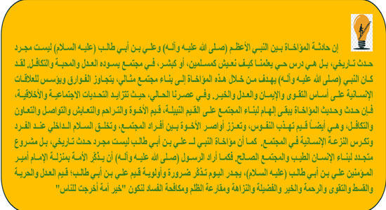 مؤاخاة النبيّ للوصيّ: شأن إيماني ودرس إنساني وإنجاز سياسي واجتماعي يا علي .. "أنت أخي وأنا أخوك .. أنت أخي ووارثي" (فضائل الصحابة لـ أحمد بن حنبل: ص638)