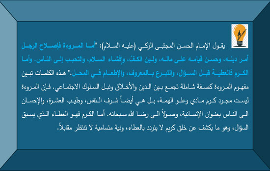 الإمام الحسن بن علي بن أبي طالب (عليه السلام) هو سبط رسول الله (صلى الله عليه وآله) وثاني أئمة أهل البيت (عليهم السلام). وُلِدَ في الخامس عشر من شهر رمضان المبارك في السنة الثالثة للهجرة بالمدينة المنورة، وهو أول أبناء الإمام علي بن أبي طالب وفاطمة الزهراء (عليهما السلام). وهكذا؛ فإن بمولده تحيط قصص مليئة بالبركة، وتتجلى في حياته حكم ومواعظ تُعتبر منارات للهداية والأخلاق الحميدة. ورُوي أن النبي الأكرم (صلى الله عليه وآله): أخذ بيد الحسن والحسين فقال: "مَنْ أحبني وأحبّ هذين وأباهما وأُمّهما كان معي في درجتي يوم القيامة" (الرياض النضرة في مناقب العشرة: ج2 - ص189/ كنز العمال: ج12 - ص96). وعن سلمان (رضي الله عنه) قال سمعت رسول الله (صلى الله عليه وآله) يقول: "الحسن والحسين ابناي، من أحبّهما أحبّني، ومن أحبّني أحبّه الله، ومن أحبه أدخله الجنة، ومن أبغضهما أبغضني، ومن أبغضني أبغضه الله، ومن أبغضه الله أدخله النار" (المستدرك على الصحيحين: ج3 - ص166 / كتاب معرفة الصحابة، ينابيع المودة: ص198 / سير أعلام النبلاء: ج4 - ص404). وفقاً للمصادر التاريخية والروايات الشيعية المعروفة، مثل كتاب "الإرشاد" للشيخ المفيد و"أمالي" الشيخ الصدوق، أُحيط مولد الإمام الحسن (عليه السلام) بظواهر إلهية تعكس مكانته العظيمة. عندما أكمل سبعة أيام من ولادته، جاءت به أمه السيدة فاطمة الزهراء (عليها السلام) إلى جده النبي الأكرم (صلى الله عليه وآله)، ملفوفاً في قطعة من حرير أهداها الملاك جبرئيل (عليه السلام) من الجنة. اختار النبي (صلى الله عليه وآله) له اسم "حسن"، وهو اسم لم يكن شائعاً بين العرب قبل ذلك، ويعني الجمال والإحسان، دلالة على ما سيكون عليه من خُلق رفيع وجمال روحي. كما عقّ عنه النبي بكبش، وهي سنة نبوية شريفة. يُروى أيضاً أن الإمام الحسن (عليه السلام) كان أشبه الناس بجدته خديجة الكبرى (عليها السلام) في هيئتها وأخلاقها، وهي السيدة التي دعمت الرسول (صلى الله عليه وآله) في بداية الدعوة، مما يُضفي على شخصيته طابعًا خاصًا من السمو والعطاء. كانت حياة الإمام الحسن (عليه السلام) مليئة بالدروس والعبر التي تجمع بين الروحانية والواقعية، وبين العبادة والسلوك الاجتماعي. وقد ترك لنا تراثاً غنياً من الحكم والمواعظ التي ترشد الأمة إلى طريق الصلاح والتقوى. يقول الإمام الحسن (عليه السلام): "أما المروءة فإصلاح الرجل أمر دينه، وحسن قيامه على ماله، ولين الكفّ، وإفشاء السلام، والتحبب إلى الناس. وأما الكرم فالعطية قبل السؤال والتبرع بالمعروف، والإطعام في المحل" (تاريخ ابن عساكر. ترجمة الإمام الحسن (عليه السلام): ص166). هذه الكلمات تبين مفهوم المروءة كصفة شاملة تجمع بين الدين والأخلاق ونبل السلوك الاجتماعي. فالمروءة ليست مجرد كرم مادي وعلو الهمة، بل هي أيضاً شرف النفس وطيب العشرة والإحسان الى الناس بعنوان الإنسانية، وصولاً الى رضا الله سبحانه. أما الكرم فهو العطاء الذي يسبق السؤال، وهو ما يكشف عن خلق كريم لا يتردد بالعطاء، ونية متسامية لا تنتظر مقابلاً. وكان الإمام الحسن (عليه السلام) معروفاً بكرمه اللافت، حتى لُقِّب بـ"كريم أهل البيت". يُروى أنه كان يُعطي كل ما لديه للفقراء والمحتاجين، بل وكان قد قسَّم ماله ثلاث مرات في حياته، فيعطي نصفه للمحتاجين ويحتفظ بالنصف الآخر. ويقول الإمام في نفس الموعظة: "ثم النجدة: الذبّ عن الجار، والمحاماة في الكريهة، والصبر عند الشدائد" (تاريخ اليعقوبي: ج2 – ص226). هنا يعلمنا الإمام أن الشجاعة الحقيقية ليست فقط في المعارك، بل في الوقوف إلى جانب الضعيف، وحماية حقوق الآخرين، والصبر في مواجهة المحن. وقد تجلى هذا في حياته، خصوصاً في صلحه مع معاوية، حيث اختار الصبر والحكمة حفاظاً على دماء المسلمين ووحدتهم. ومن حكمه قوله: "ولا تحمل همّ يومك الذي لم يأت على يومك الذي أنت فيه" (بحار الأنوار: ج44 – ص139). هذه الكلمات تظهر نظرة متفائلة للحياة، وتدعو إلى التركيز على الحاضر دون الانشغال المفرط بالمستقبل، مما يُعزز الطمأنينة في النفس 